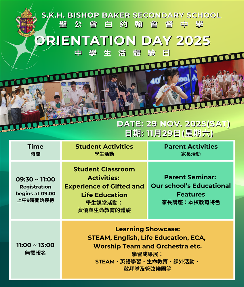 感謝各位家長及同學對本校11月29日之「中學生活體驗日」的熱烈支持與參與!以下是活動當日的各項重要安排,請務必留意: