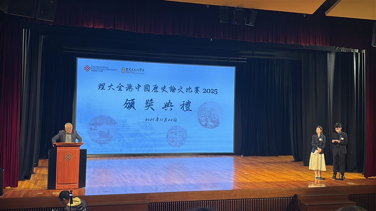 The Prize Award Ceremony for the PolyU Young Historian Competition Awards 2025 was organised on November 22 by the Department of Chinese History and Culture.