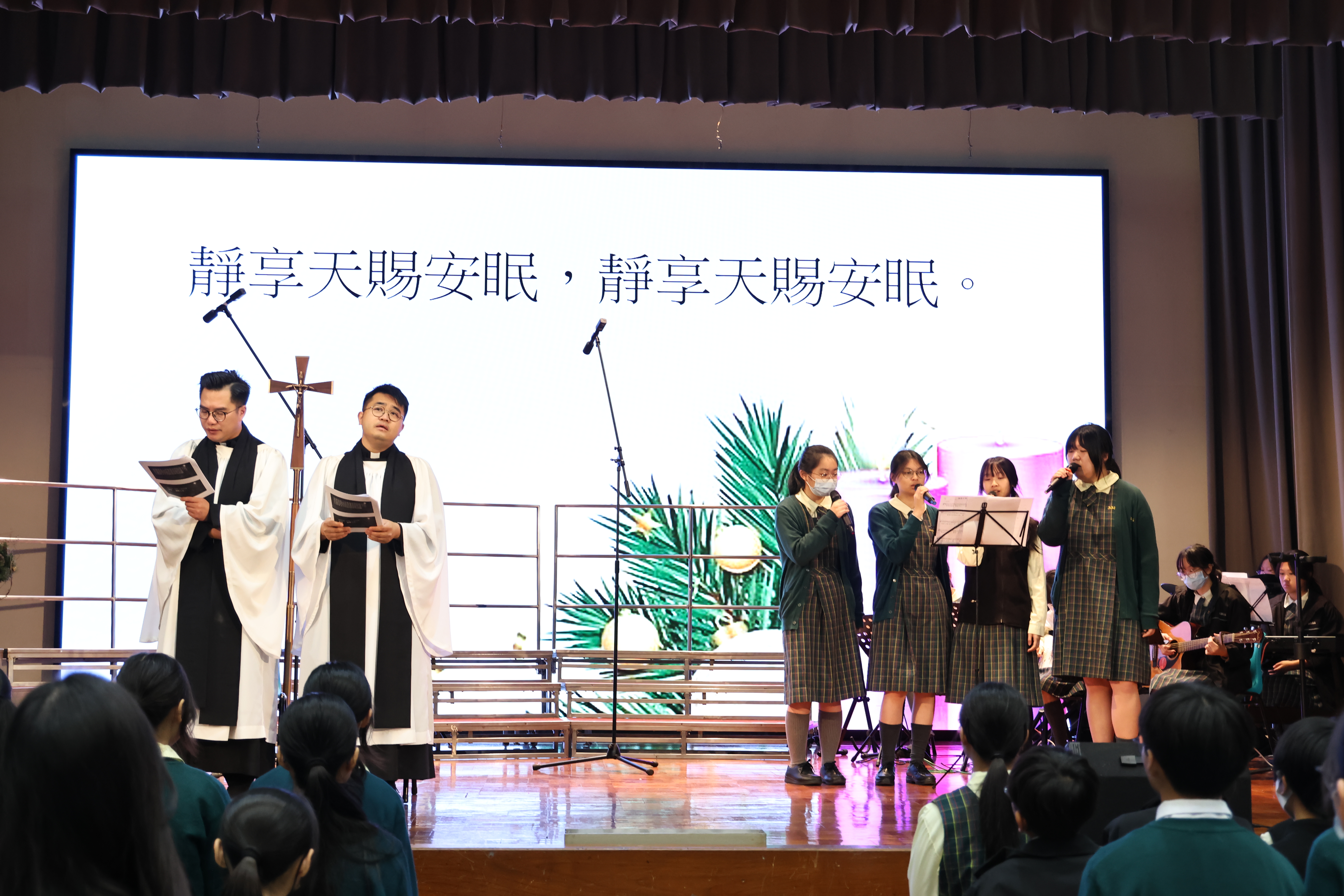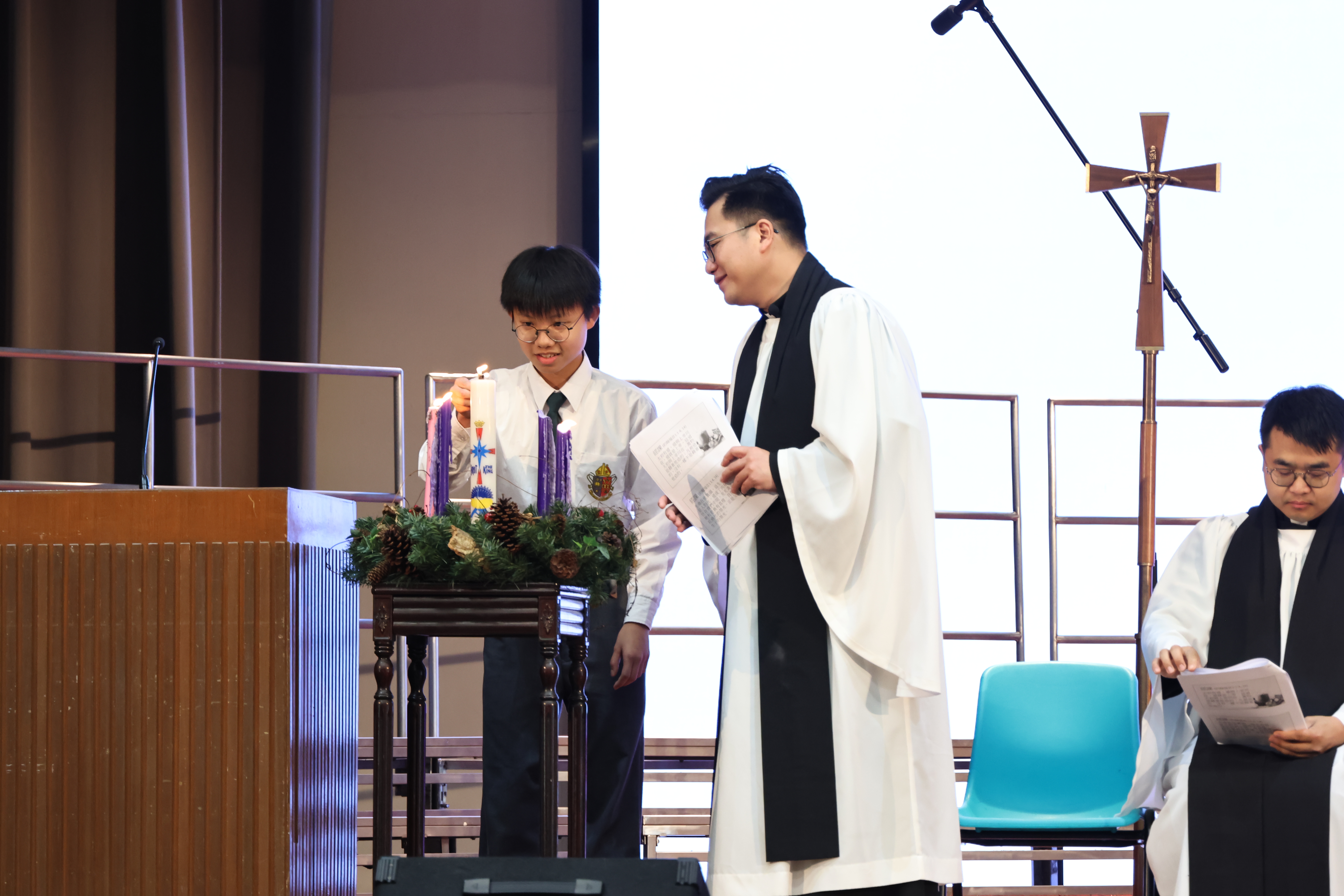 The Revd Li Man Kei, Kenneth from St. Joseph’s Church delivered the sermon. The Revd CHAN Wing Fung, Vincent presided at the service. Through this worship service, students gained a deeper understanding of the great event of God’s incarnation and redemption, and came to appreciate that Christmas is a festival of sharing love and hope.