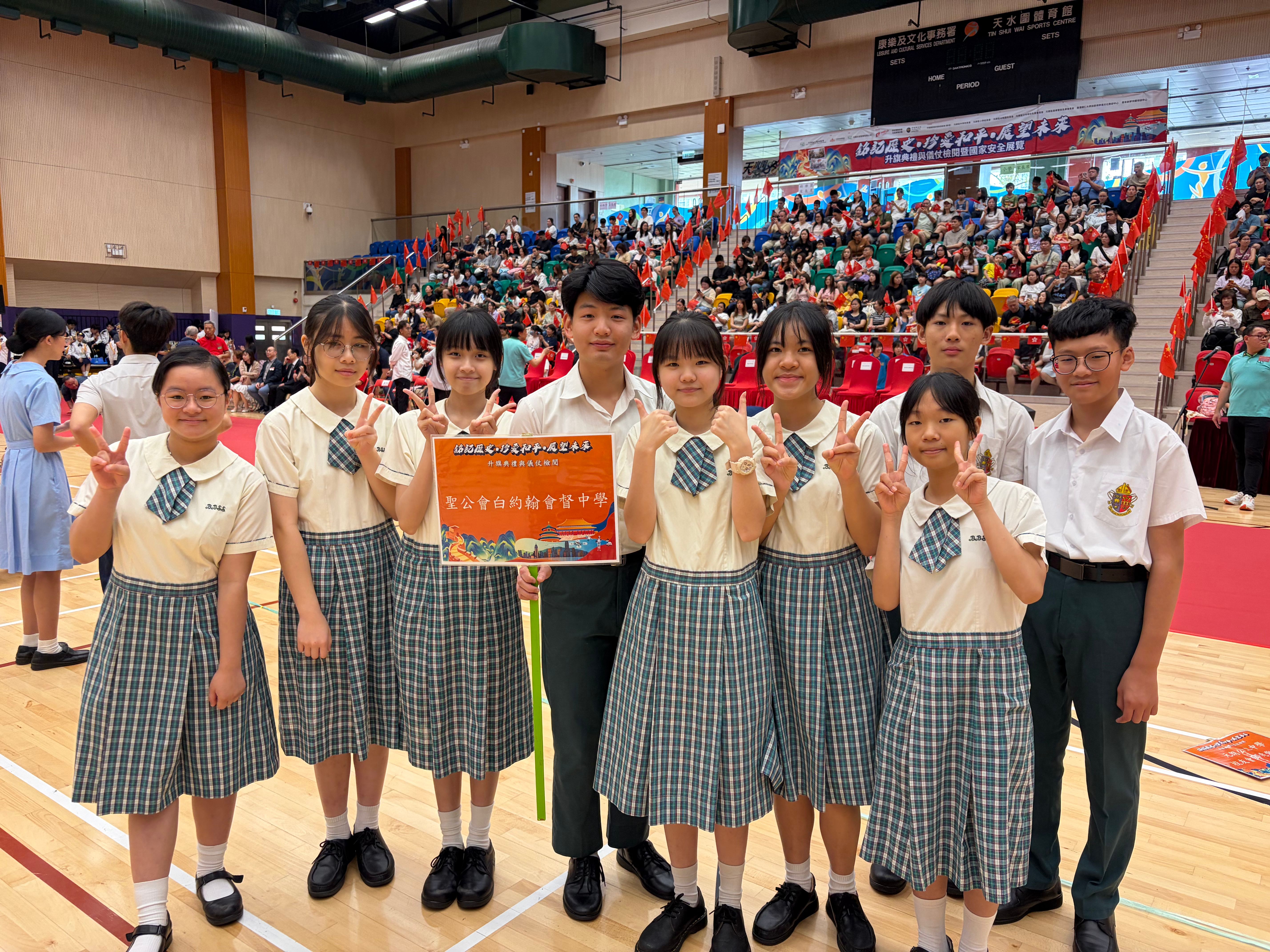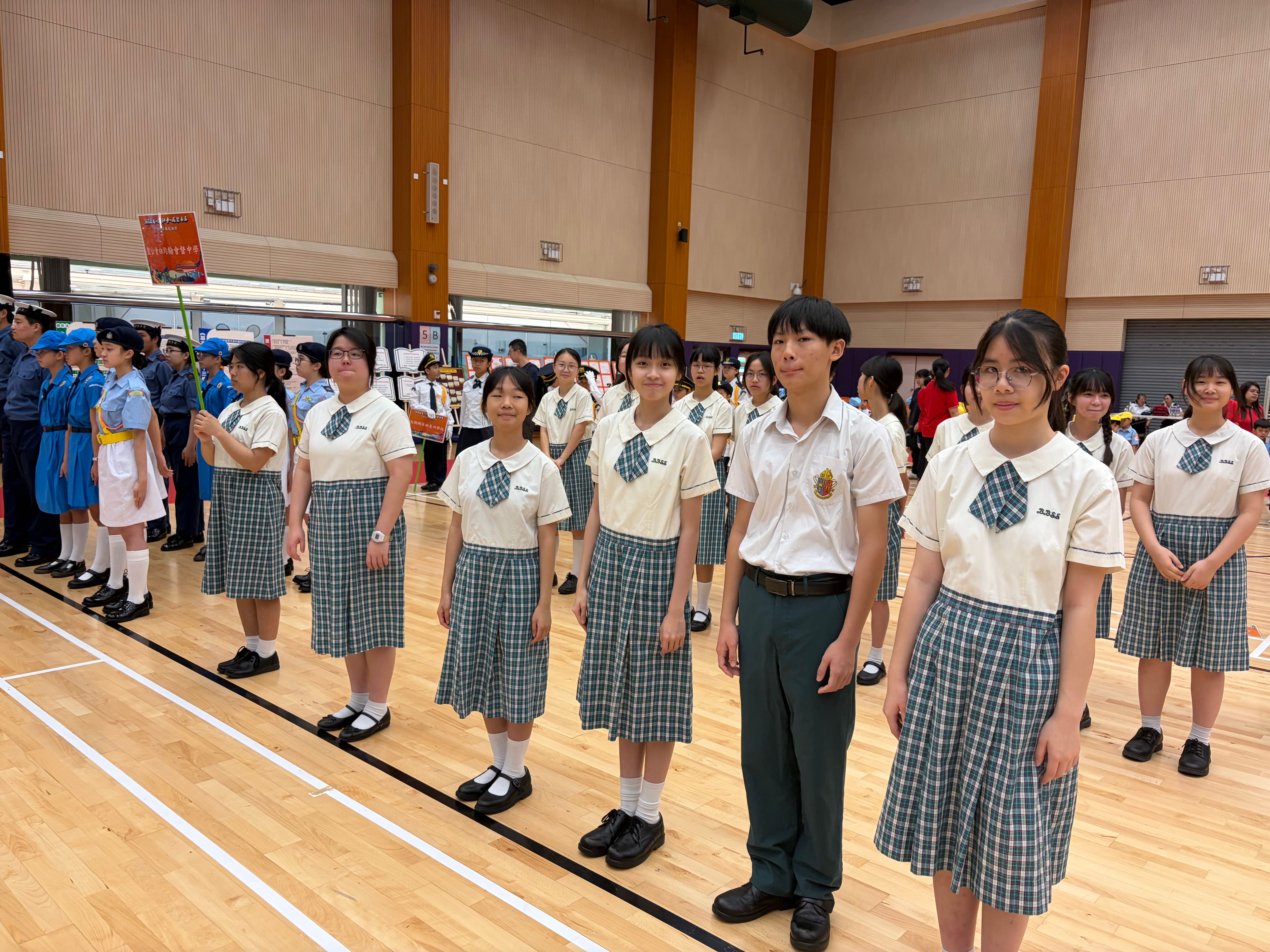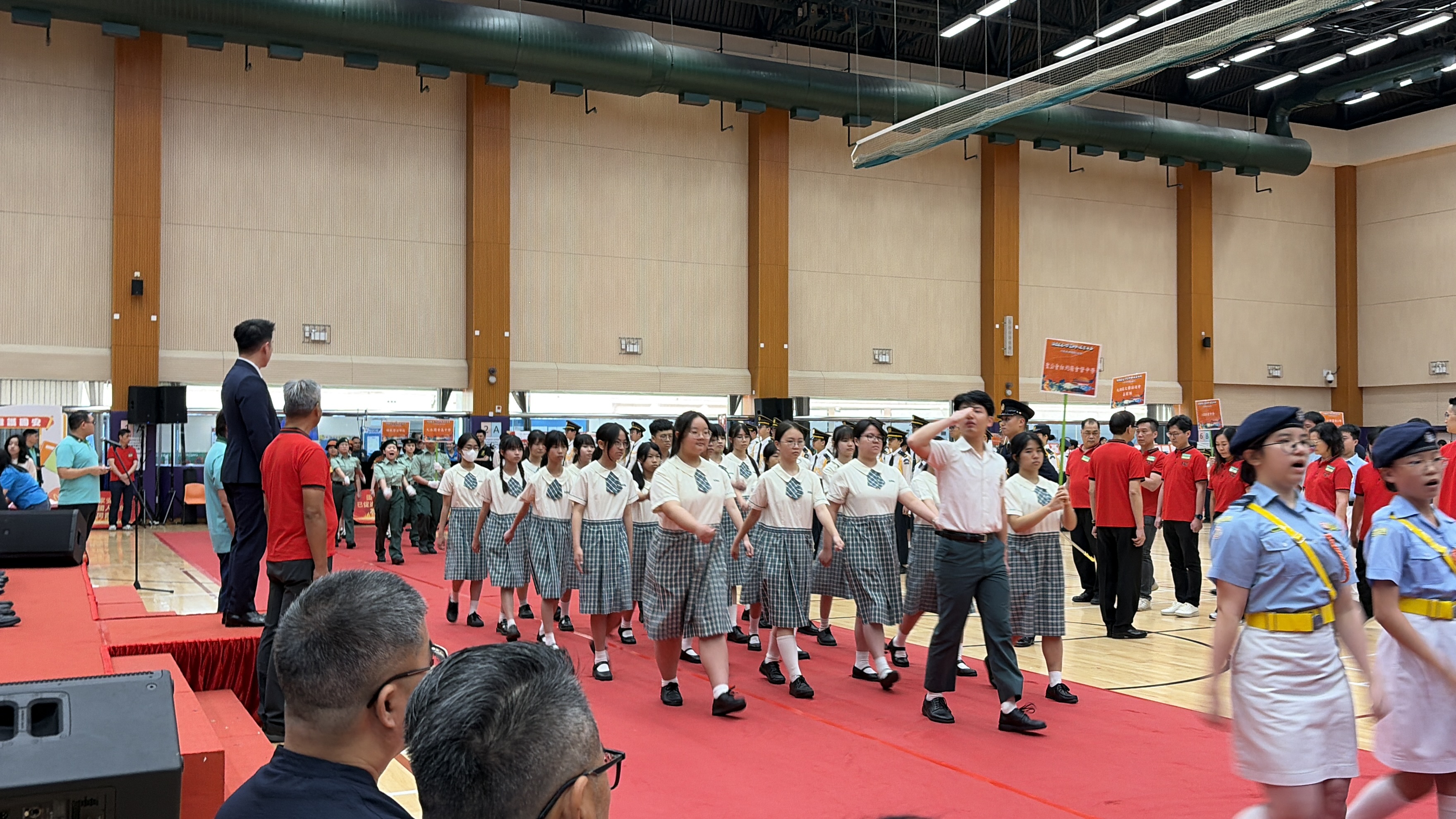 The ceremony was majestic. As the national anthem played and the Five-star Red Flag rose, the entire audience stood in solemn attention, and a strong sense of pride and mission filled the hearts of our teachers and students. Under the review of the Inspecting Officer, Mr. Ma Fu-wai, Kelvin, JP, District Officer (Yuen Long), our team members, dressed in neat uniforms, demonstrated rigorous discipline and a vibrant spirit with their firm and powerful steps, fully embodying the sense of belonging of our students to our nation.