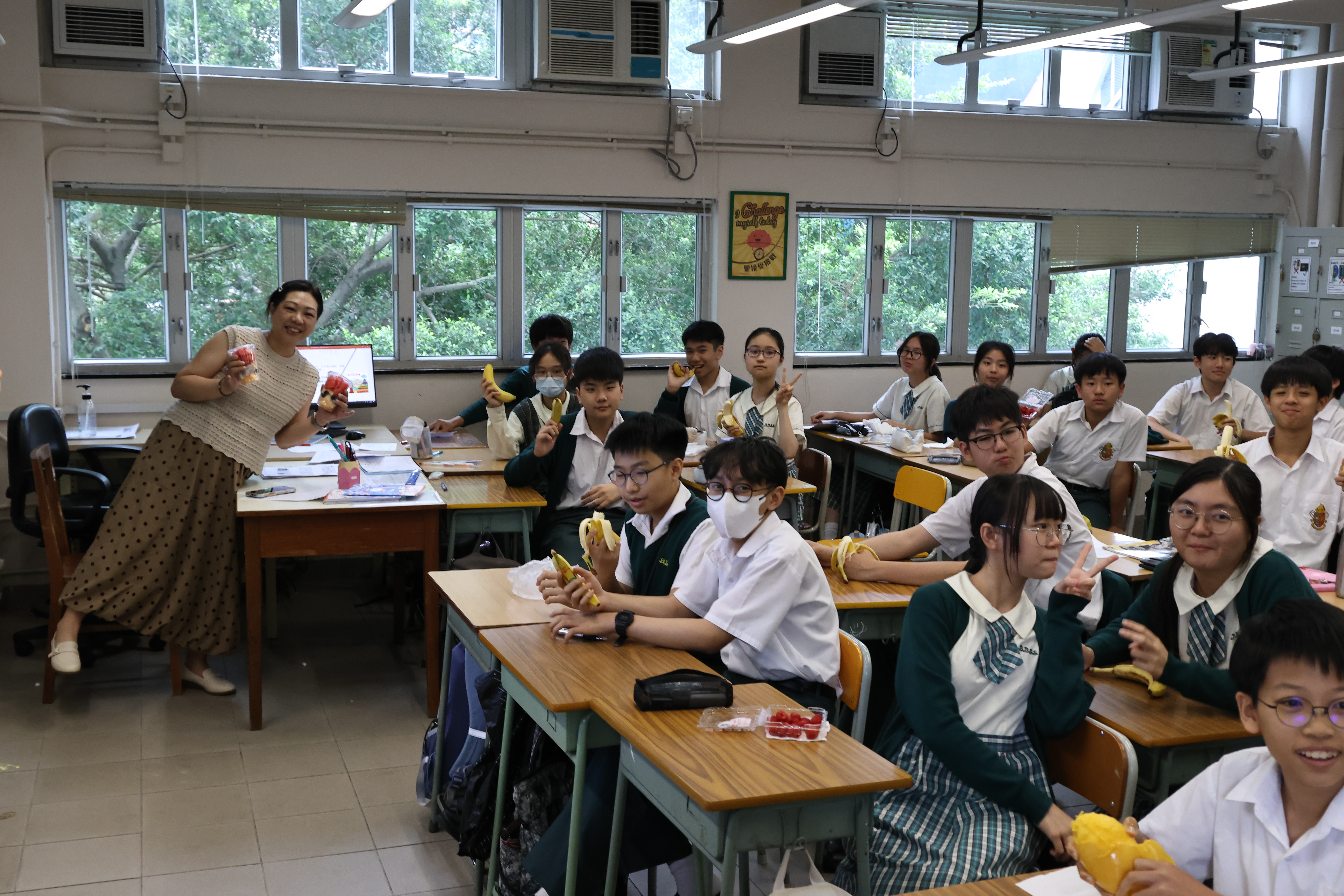 In response to the “Joyful Fruit & Veg Month” organized by the Department of Health, our school held a "Joyful Fruit Day" on 20th April 2026. Students enthusiastically brought their own fruits and enjoyed them with their class teachers during the “Fruit Party”, creating a lively atmosphere of enjoying fruits together. PTA committee members of our school also prepared fresh and seasonal fruit cups for all staff members. Through the event, our school created an enabling environment to cultivate students’ habit of consuming adequate fruits and vegetables every day, establishing healthy eating habits and lifestyles.