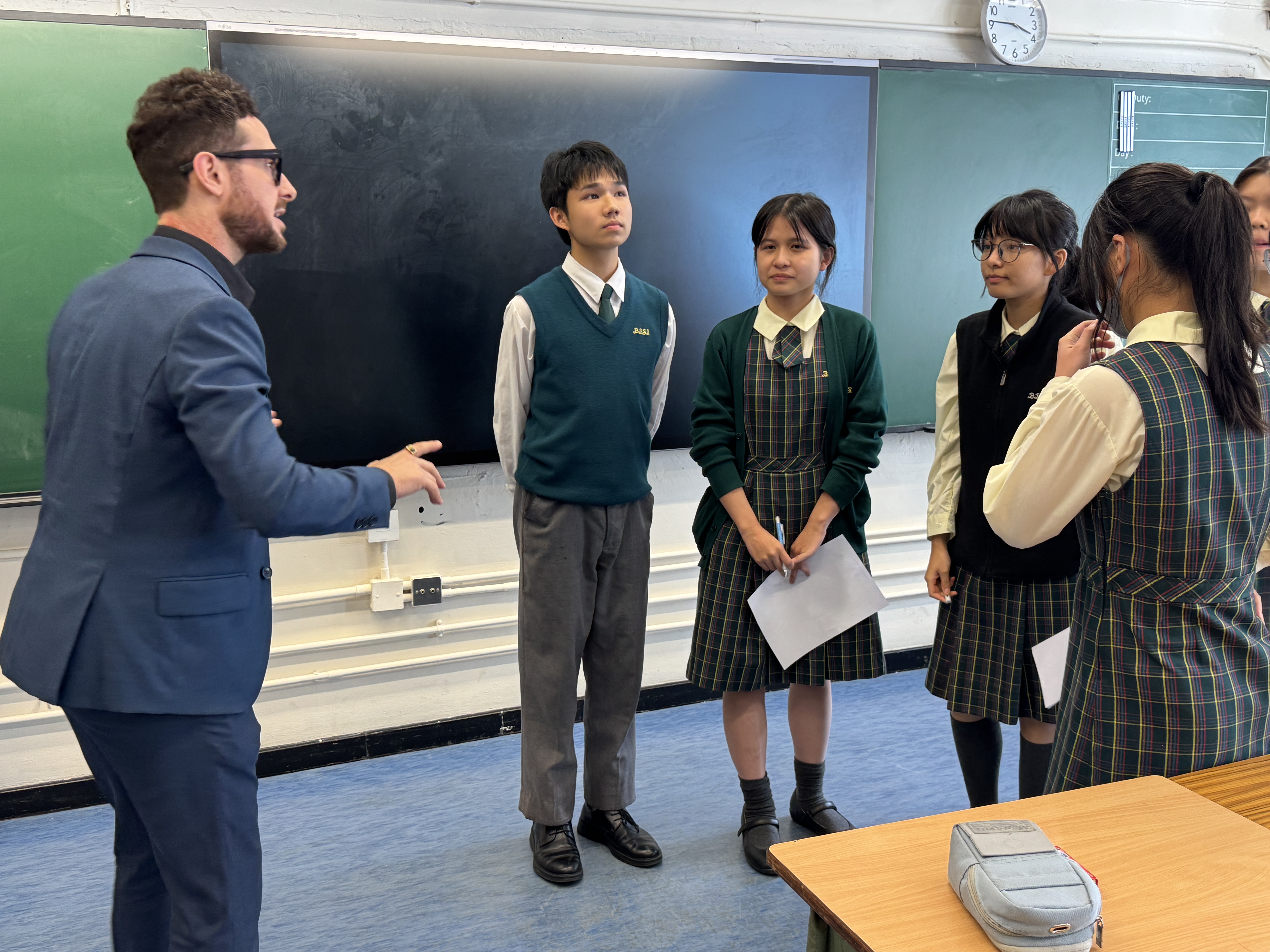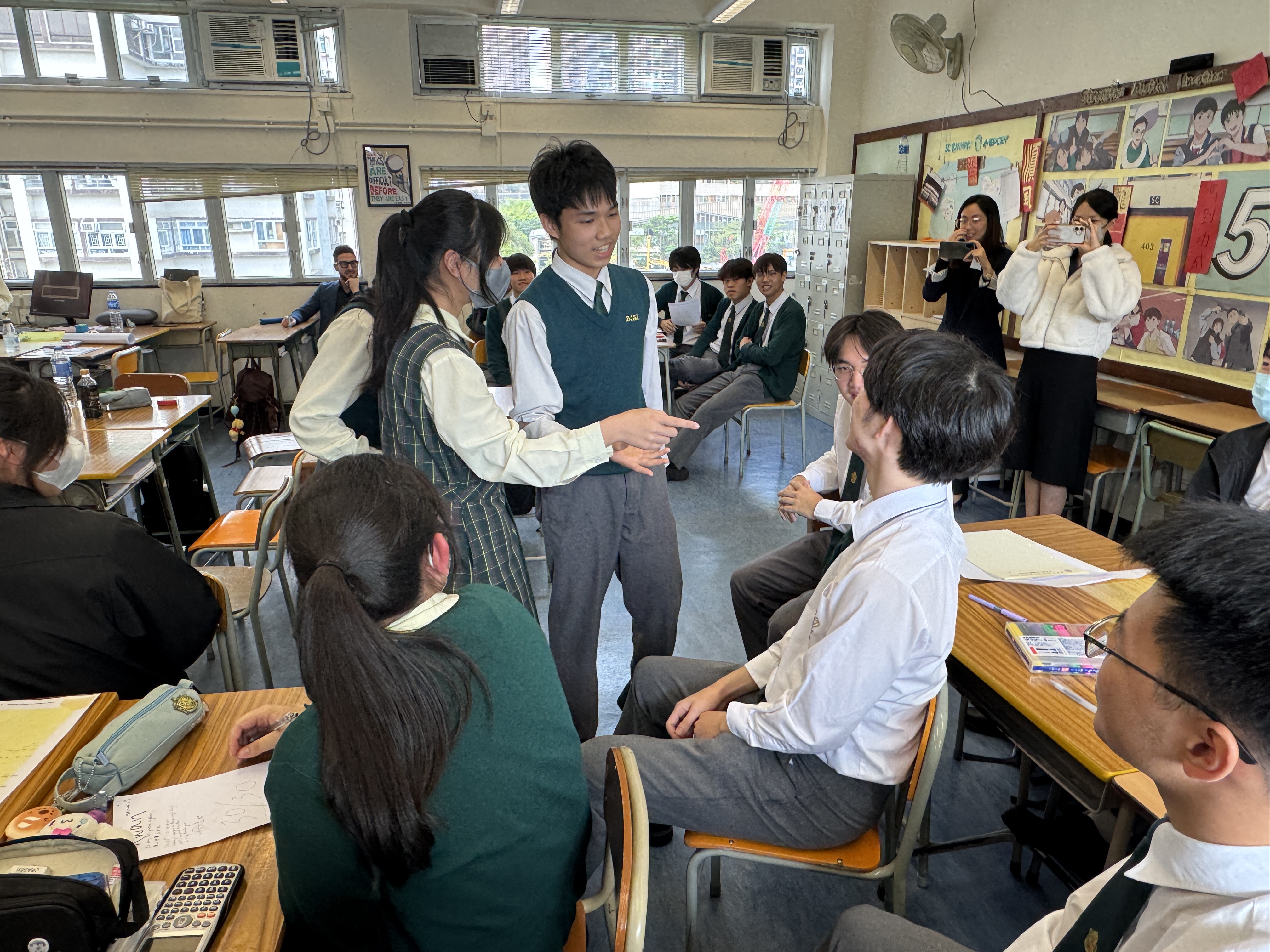 During the workshop, S5 students collaborated in an improvised drama activity. They played language games and performed impromptu short plays to share their ideas and life experiences regarding kindness. This dynamic improvisation was designed to bolster communication confidence and collaborative thinking. The exercise shifted the focus from linguistic accuracy to spontaneous interaction, encouraging students to think on their feet and maintain a cohesive narrative flow. By removing the fear of being "wrong," the activity reduced speaking anxiety and fostered a supportive environment where students practiced natural expressions and active listening. Students also practised storytelling techniques, such as voice modulation, facial expression and pacing, to explore how these elements could enhance communication in English. For senior students, this served as critical preparation for real-life communication and oral assessments, enhancing their ability to adapt to unpredictable conversational turns while developing empathy and teamwork.